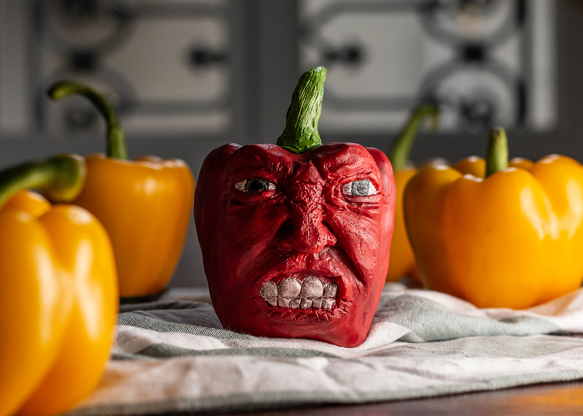 Un poivron rouge est- il un poivron jaune en colère ? Voici en tout cas l’explication que je propose dans cette image surréaliste.
